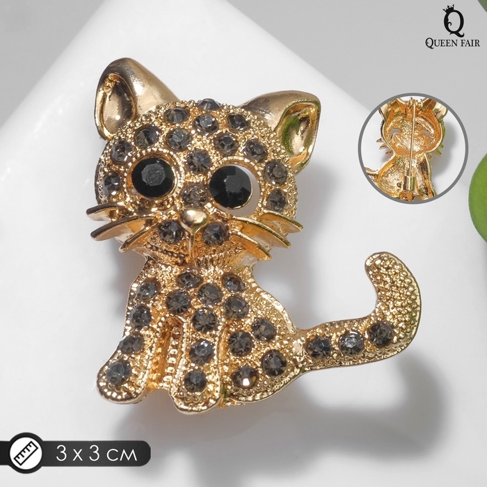 Брошь «Кошечка» очаровательная, цвет чёрно-серый в золоте