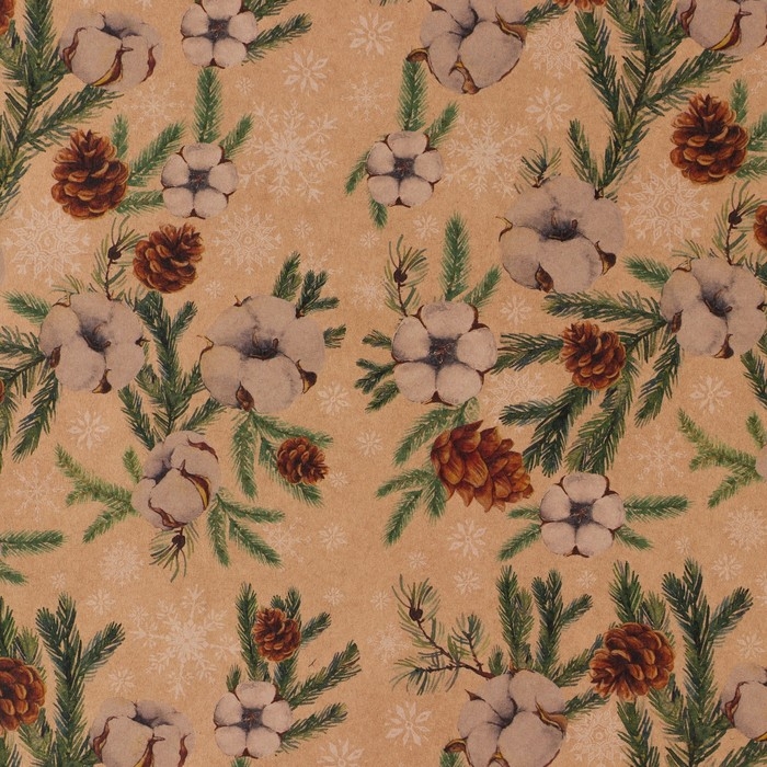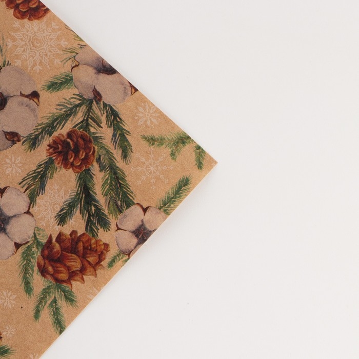 Упаковочная бумага на новый год крафтовая «Шишки» , 70 х 100 см