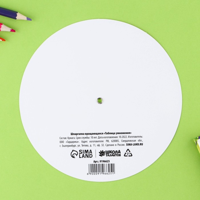 Шпаргалка вращающаяся «Таблица умножения»