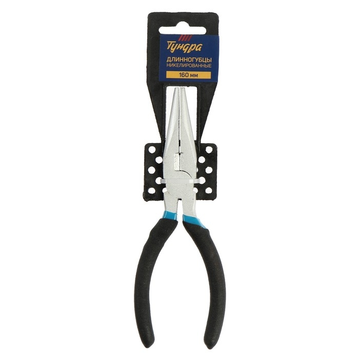Длинногубцы ТУНДРА, никелированные, обрезиненные рукоятки, 160 мм
