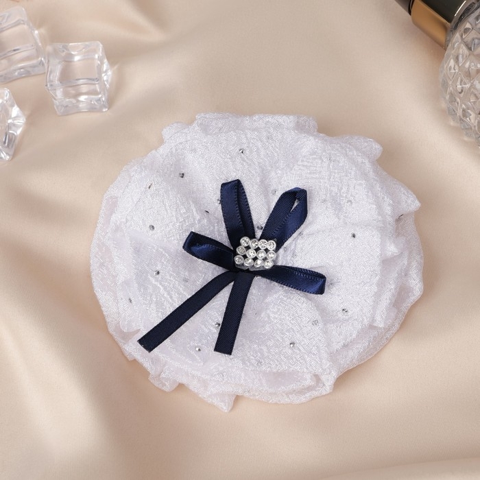 Резинка для волос бант "Школьница" капельки синий бант, d-11 см, сине-белый