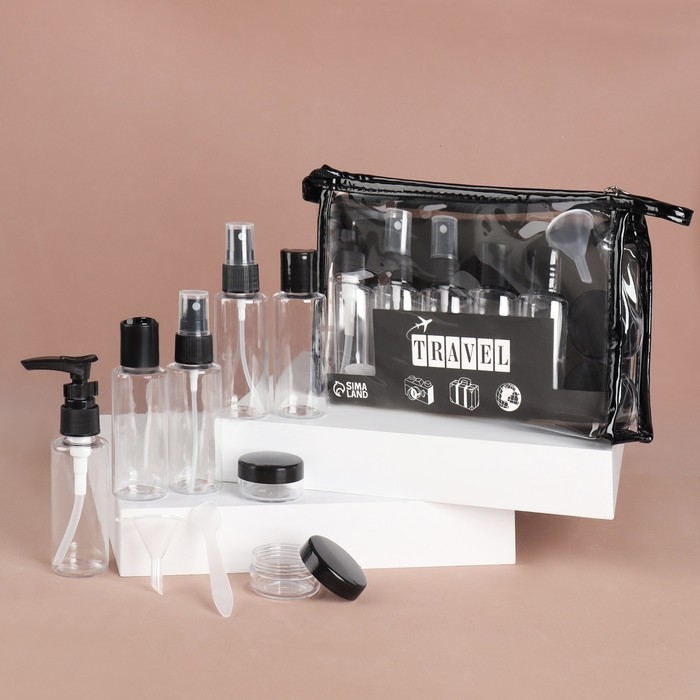 Набор для хранения, в чехле, 9 предметов, цвет прозрачный/чёрный