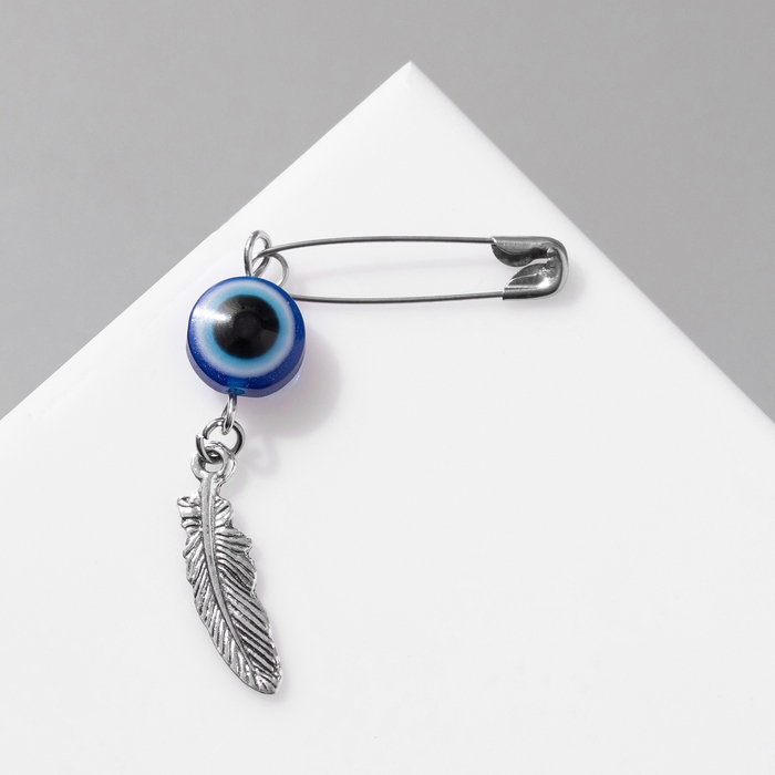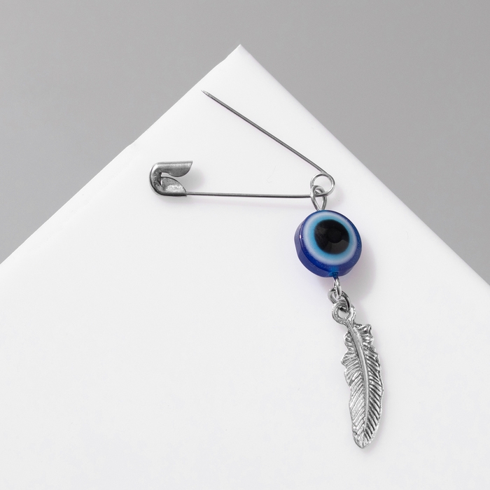 Булавка-оберег «От сглаза» 6см, цвет бело-синий в серебре