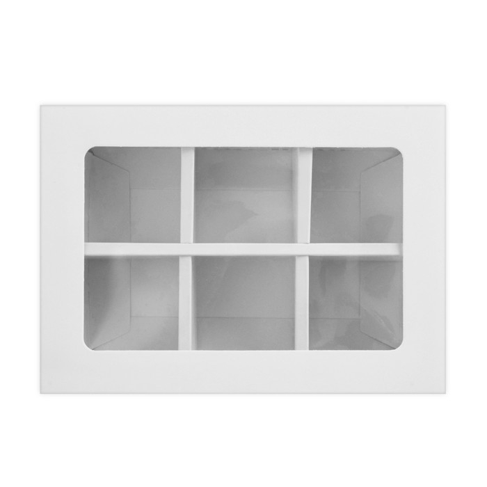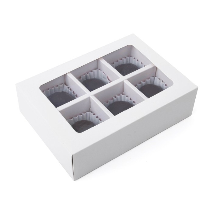 Коробка для 6 конфет с окном, белая, 13,7 х 9,85 х 3,85 см. Кондитерская упаковка