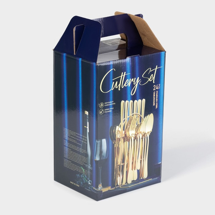 Столовые приборы из нержавеющей стали «Классика», 24 предмета, на подставке, толщина 1,2 мм, цвет серебряный