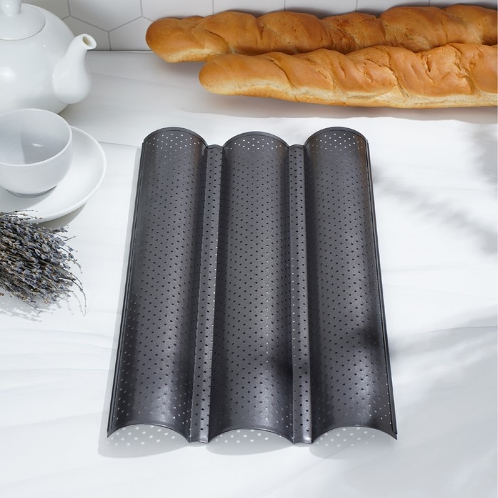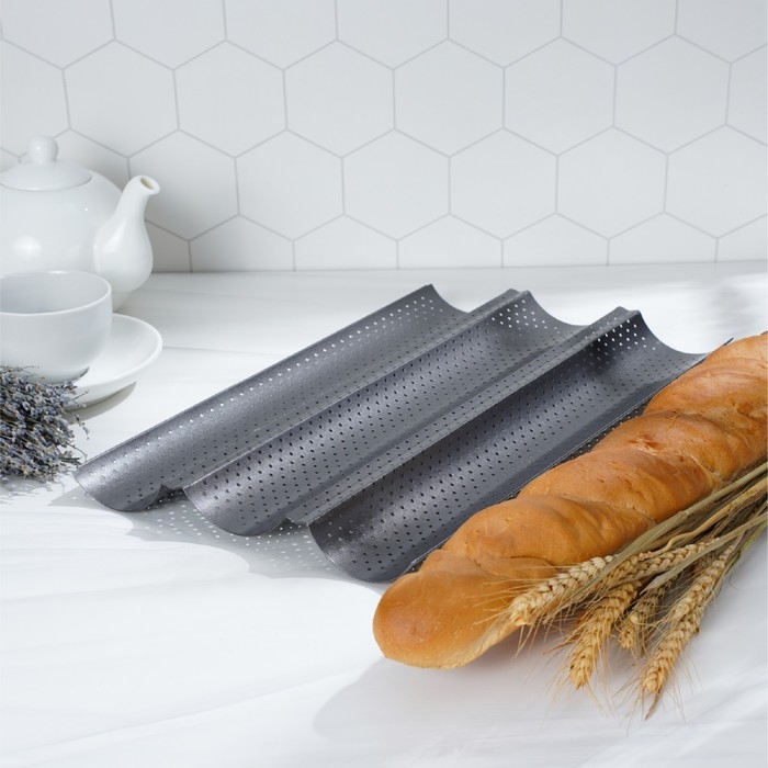 Форма для выпечки перфорированная Доляна «Хлеб. Багет», 38×23,5×2,5 см, антипригарное покрытие