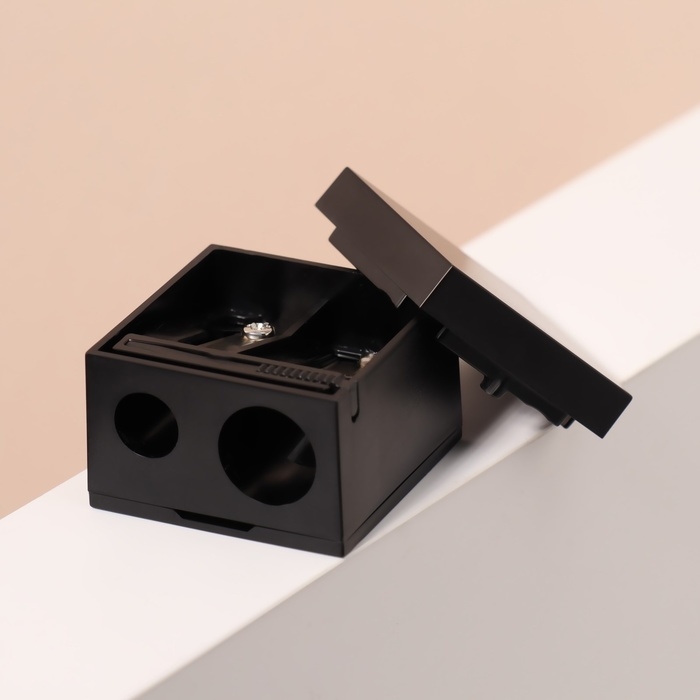 Точилка косметическая, с крышкой, двойная, цвет чёрный