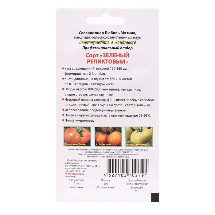 Семена Томат "Зеленый реликтовый", 5 шт