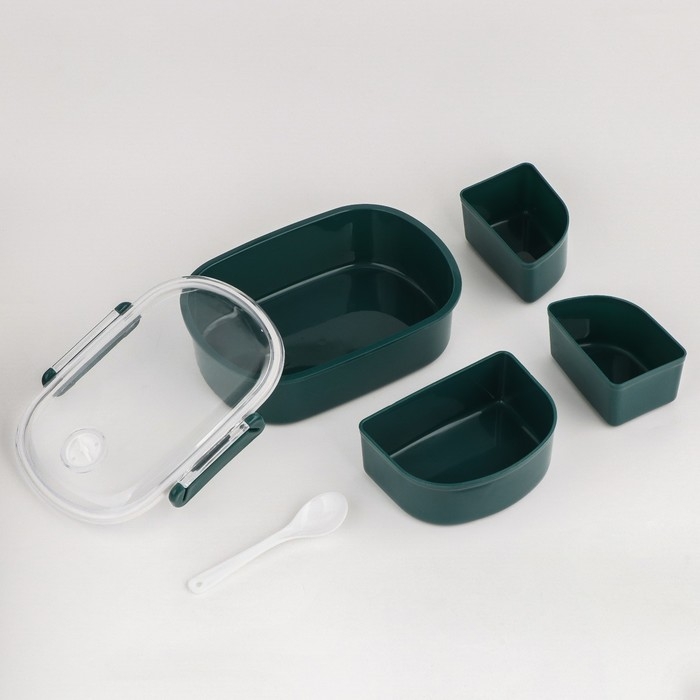 Набор контейнеров пищевых Доляна, 3 шт: 1 л, 18,5×12×7 см, прямоугольные, прозрачные, крышка зелёная
