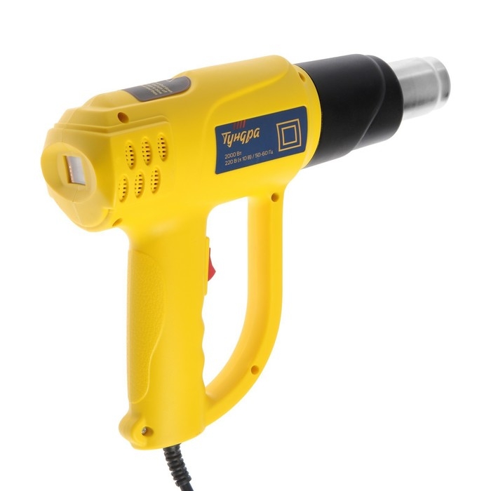 Строительный фен ТУНДРА, 2000 Вт, 250-500 л/мин, плавная регулировка температуры 60-600°С