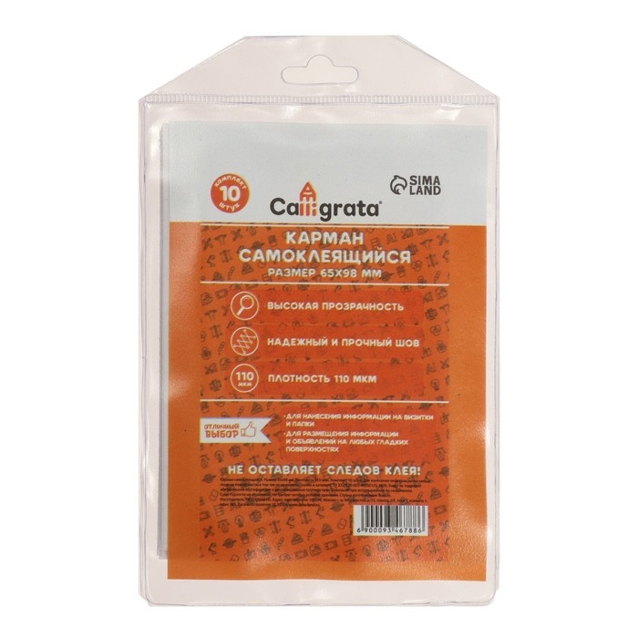 Карман самоклеящийся 65 х 98 мм, комплект 10 штук, для визитных карточек Calligrata, 110 мкм