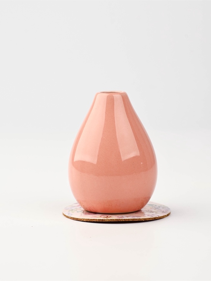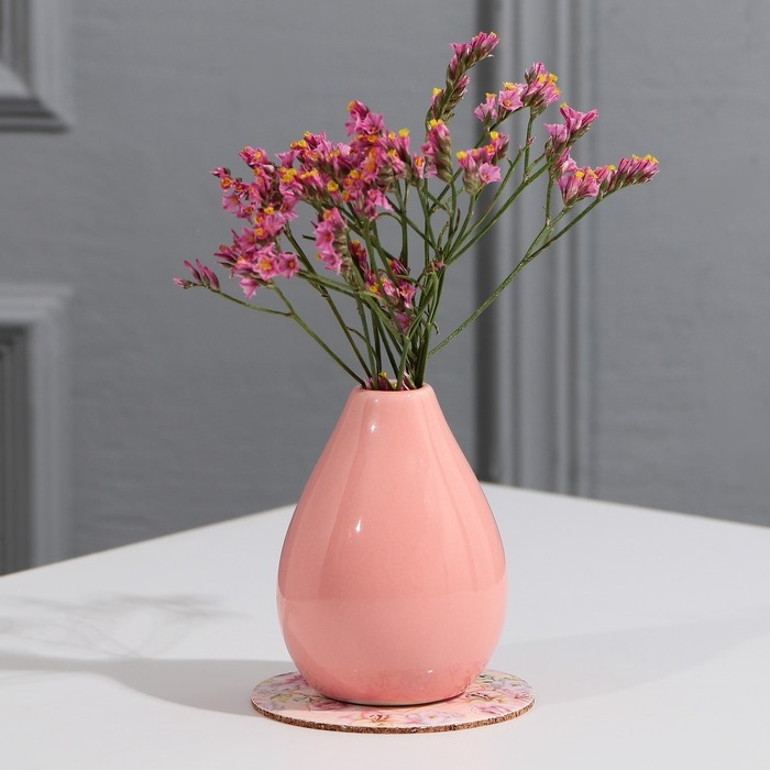 Ваза выполнена в нежно-розовом цвете и имеет форму капли. Она идеально подходит для небольших букетов цветов, которые украсят ваш дом в новогоднюю ночь.