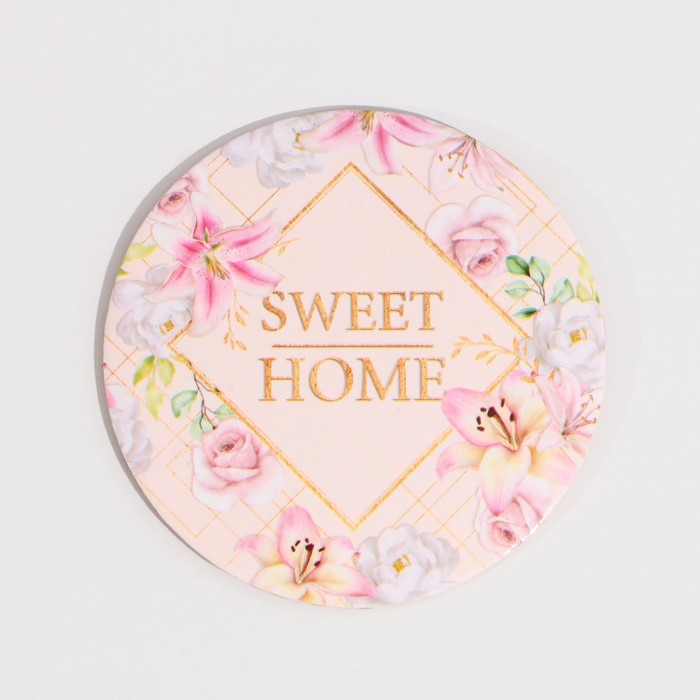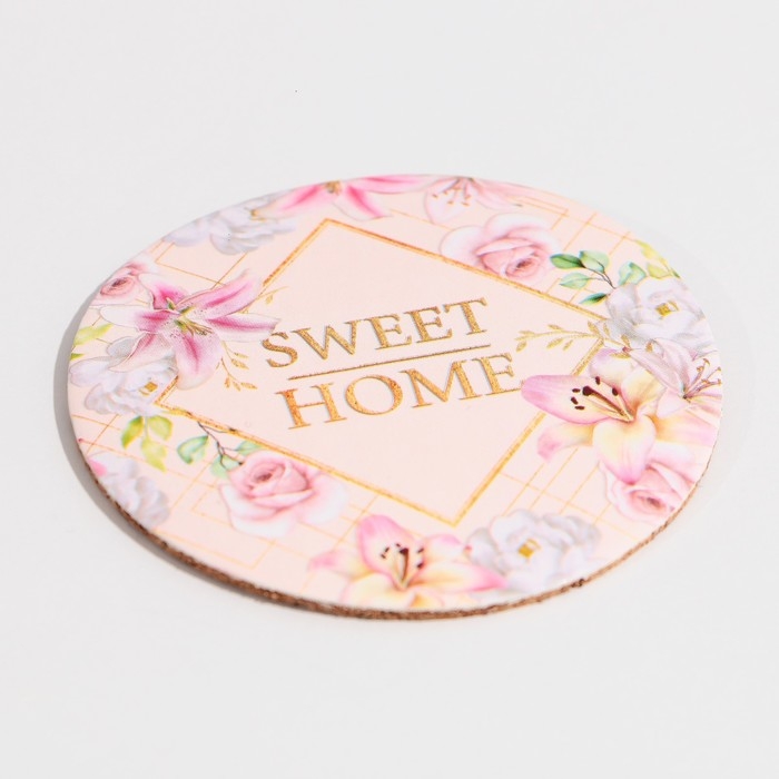 В комплект входит также подставка под вазу - она сделана из пробки, а сверху напечатан рисунок цветов и надпись "Sweet Home".
