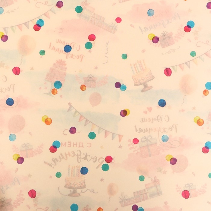Бумага упаковочная, глянцевая "С Днем Рождения", 70 х 100 см, 1 лист