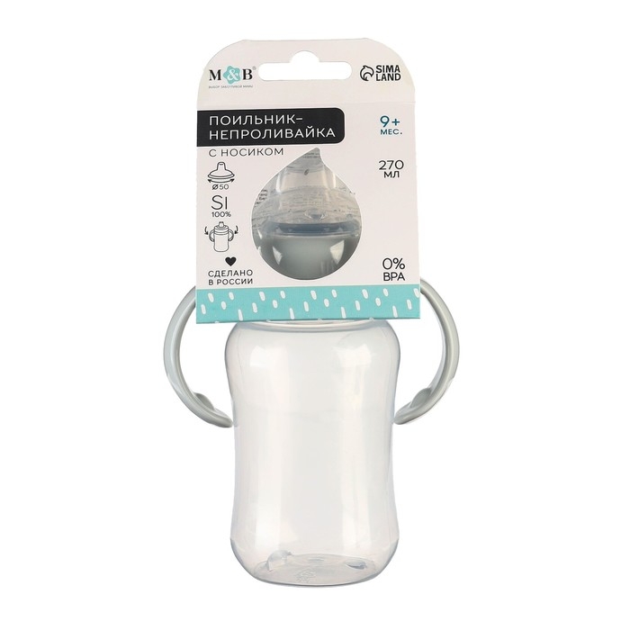Поильник - непроливайка детский с мягким носиком M&B, 270 мл., с ручками, серый