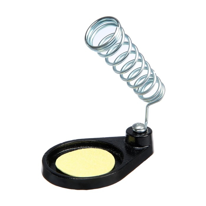 Подставка с витым металлическим основанием, устойчива к высоким температурам благодаря чему паяльник быстро охлаждается, тем самым позволяет использовать изделие постоянно