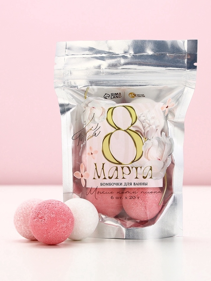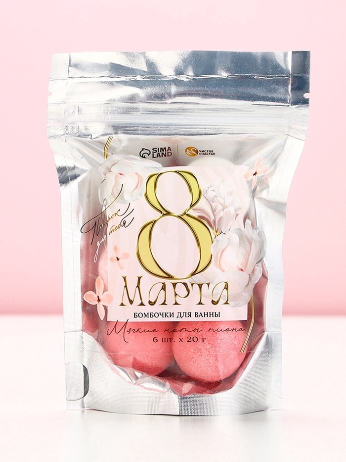 Подарочный набор бомбочек для ванны «С 8 Марта!», 6х20 г, аромат пиона, ЧИСТОЕ СЧАСТЬЕ