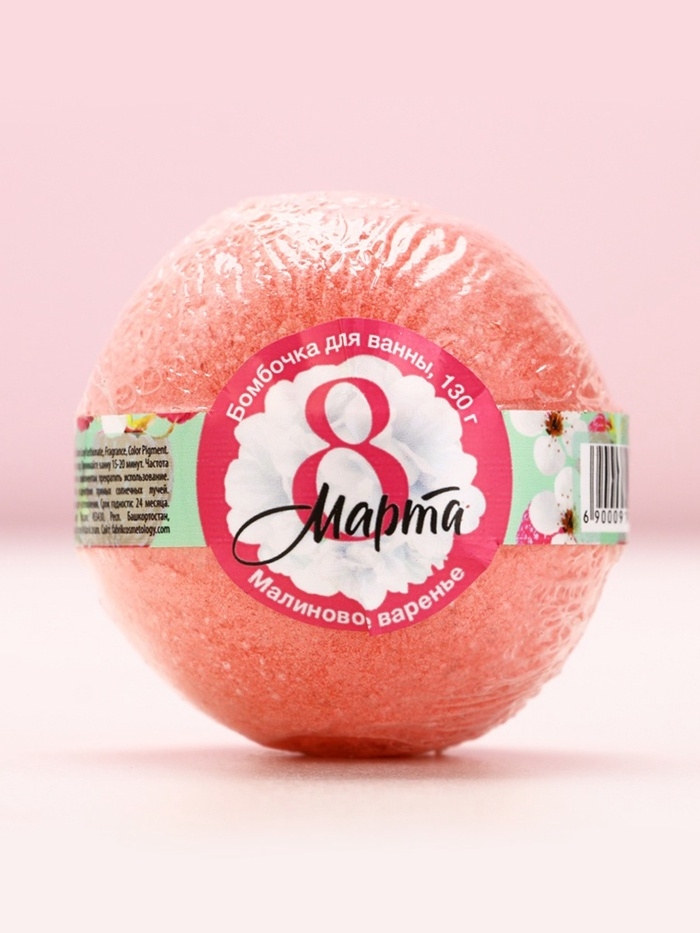Бомбочка для ванны «С 8 Марта!», 130 г, аромат малинового варенья, ЧИСТОЕ СЧАСТЬЕ