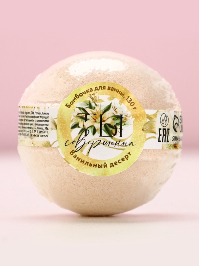 Бомбочка для ванны «Ты совершенна!», 130 г, аромат ванильного десерта, ЧИСТОЕ СЧАСТЬЕ