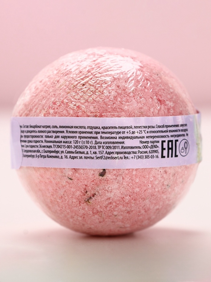 Бомбочка для ванны с лепестками роз «Ты совершенна», 120 г, аромат розы, ЧИСТОЕ СЧАСТЬЕ