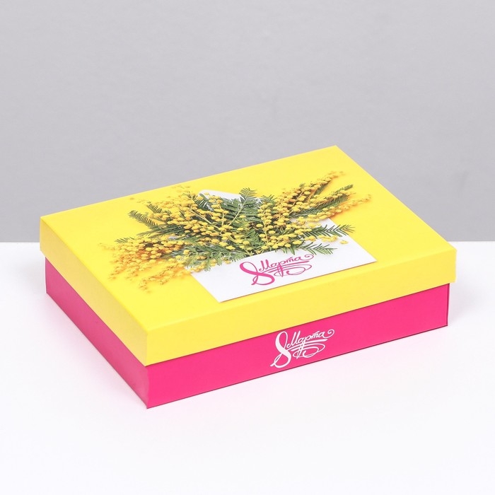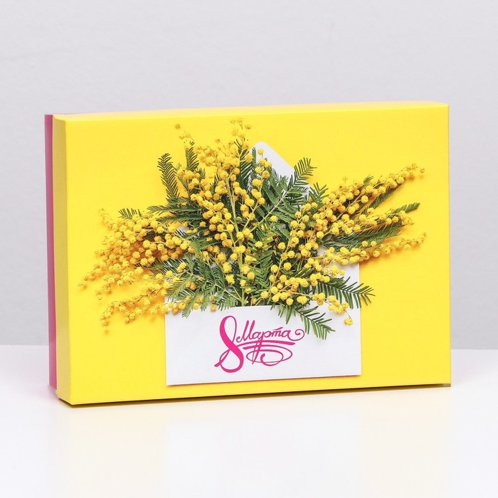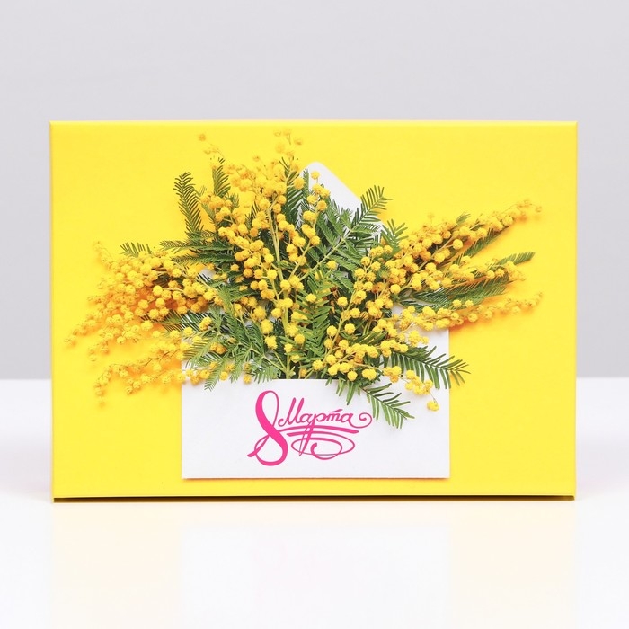 Подарочная коробка "8 марта, мимозы", 21 х 15 х 5,7 см
