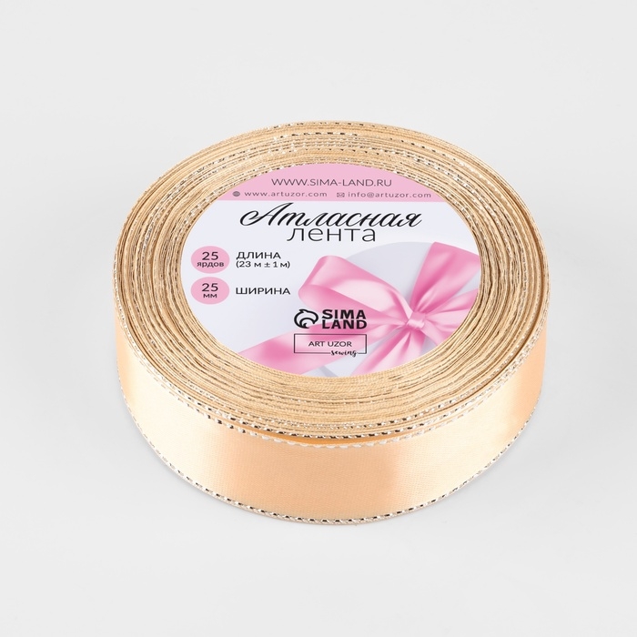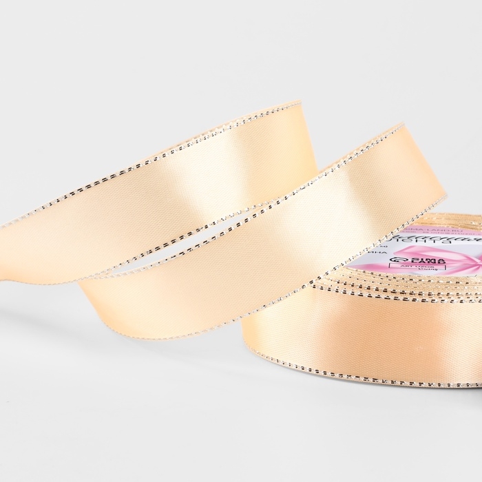 Лента атласная «Серебряные нити», 25 мм × 23 ± 1 м, цвет нежно-персиковый №007
