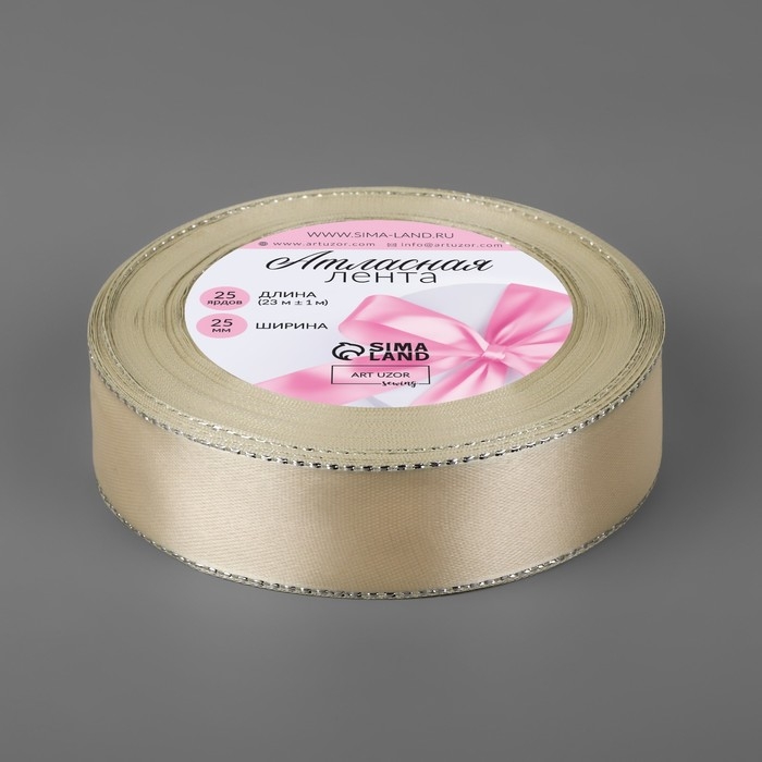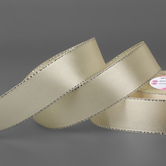 Лента атласная «Серебряные нити», 25 мм × 23 ± 1 м, цвет светло-бежевый №08