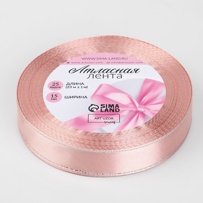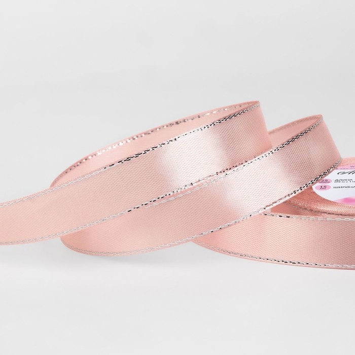 Лента атласная «Серебряные нити», 15 мм × 23 ± 1 м, цвет нежно-персиковый №007