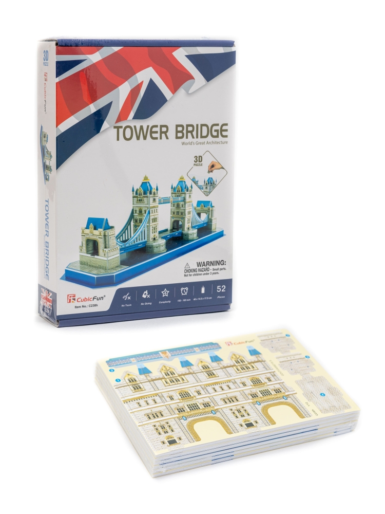Конструктор Лондонский мост - развивающая игрушка которая помогает развивать различные навыки и способности ребенка. Увлечь ребенка на долгое время поможет 3д конструктор, из которого можно собрать мировые достопримечательности, которые выглядят совсем как настоящие и с исторической точностью повторяют каждую деталь внешнего вида построек! Фигурные пазлы из этой серии помогут и взрослым и детям познать мир. Такая головоломка способствует развитию мозга, логического мышления, мелкой моторики рук и памяти во время игрового процесса. Мягкие пазлы изготовлены из пенокартона и внешне напоминают деревянные пазлы. Конструктор 3д имеет инструкцию и 52 детали. Готовый картонный пазл можно поставить на полку, чтобы потом собрать целую коллекцию. 3д пазл подходит детям от 5 лет и взрослым. Конструктор из картона упакован в коробку, что делает его восхитительным подарком. 3д конструктор из картона имеет 4 из 5 сложность сборки, а значит подарит несколько увлекательных часов сборки. Набор конструктора Тауэрский мост станет отличным подарком для детей разного возраста, подойдет для мальчика и для девочки. Такой подарок поможет развить мелкую моторику, творческое мышление и логическое мышление. Мягкий конструктор, который позволит собрать настоящую модель Тауэрского моста и познакомиться с архитектурой Лондона. Головоломки и фигурные пазлы также станут увлекательным и полезным развлечением для ребенка. Отличный подарок на день рождения, новый год, обязательно порадует юнного строителя.