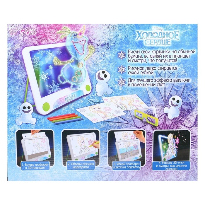 3D-планшет для рисования «Холодное сердце», неоновые маркеры, световые эффекты, с карточками