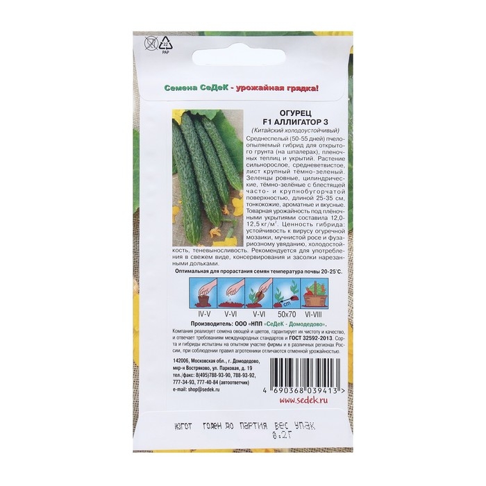 Семена Огурец "Аллигатор 3 "F1 0.2 г