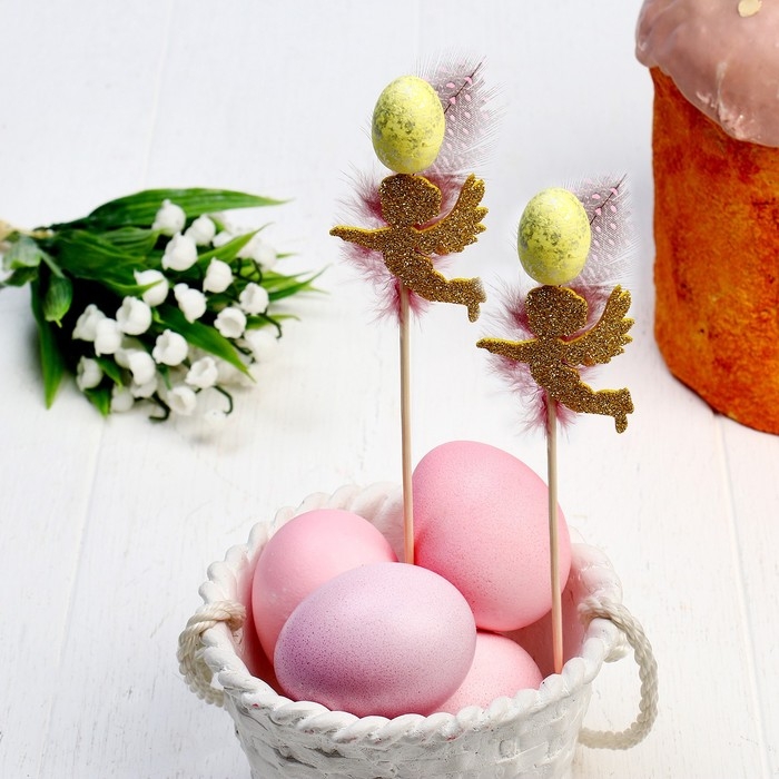 Набор пасхальных топперов «Яйцо и перо», 2 шт., МИКС