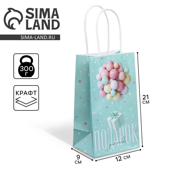 Пакет подарочный крафтовый, упаковка, «Подарок для тебя», 12 х 21 х 9 см