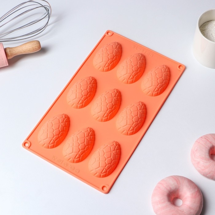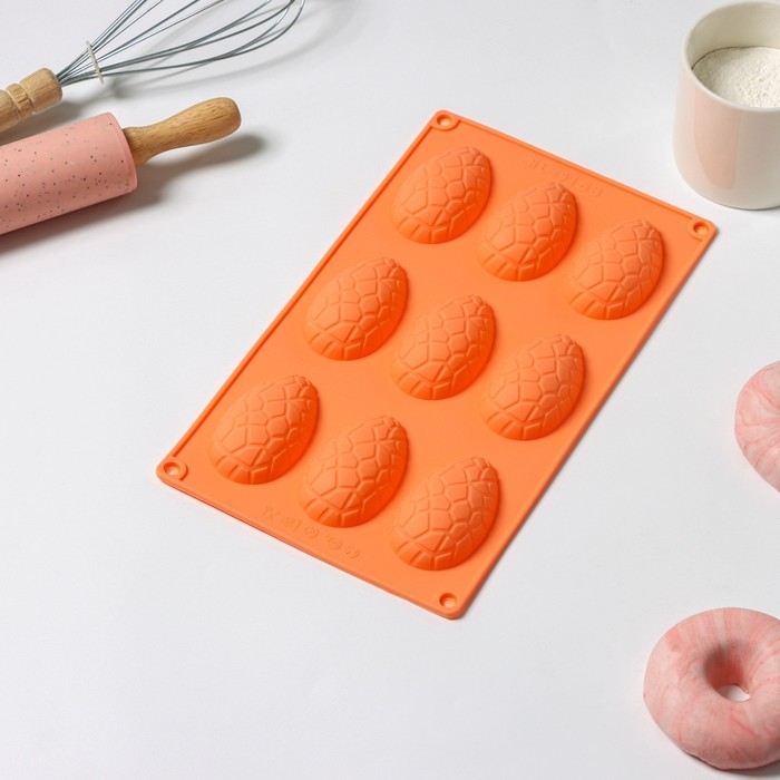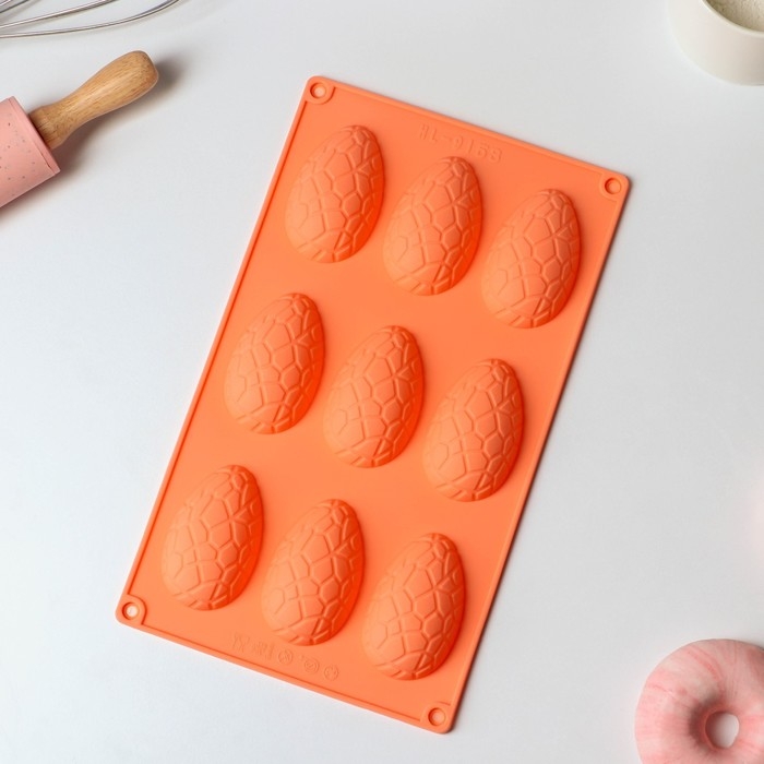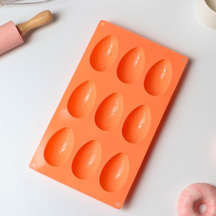Форма для выпечки Доляна «Пасха. Шоколадное яйцо», силикон, 9 ячеек, 28×16×2 см, цвет оранжевый