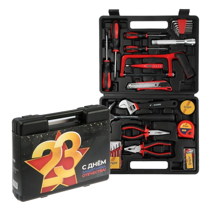 Набор инструментов в кейсе ТУНДРА "23 ФЕВРАЛЯ", в подарочной упаковке, 31 предмет