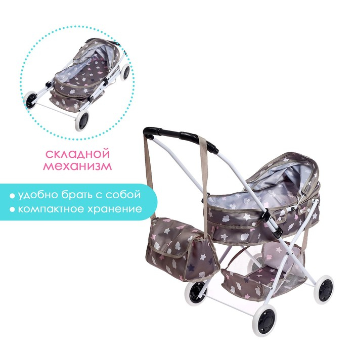 Коляска для кукол «Счастливый карапуз» универсальная, с корзиной и сумкой