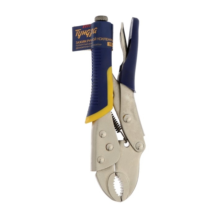 Зажим ручной ТУНДРА, усиленный полукруглый захват, с фиксатором, 2К рукоятки, 175 мм