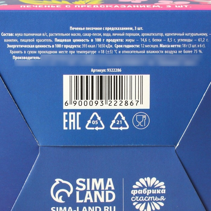 Печенье с предсказанием «Печеньки для счастья», 3 шт