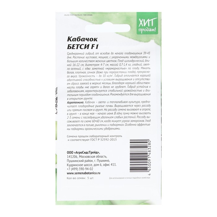 Семена Кабачок F1 для длительного плодоношения "Бетси", 5 шт