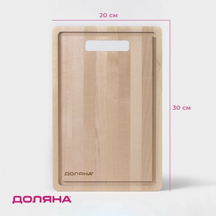 Доска разделочная с желобом Доляна «Классика» 30×20×0,8 см, массив берёзы