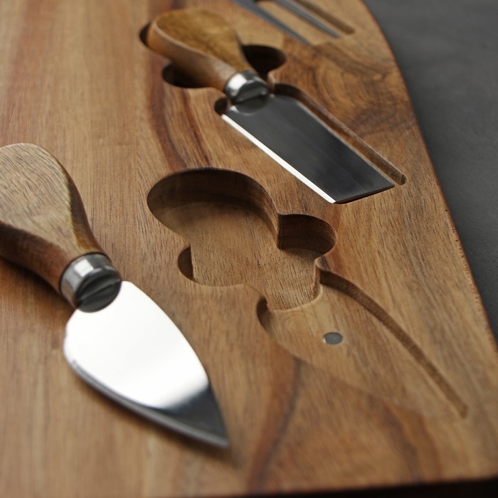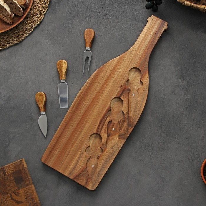 Набор для подачи сыра Magistro Bottle, 3 ножа, 48×17×1,5 см, акация