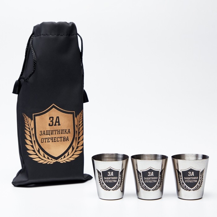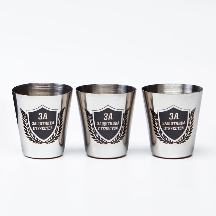 Стопки, 23 Февраля, "За защитника отечества", набор 3 шт по 30 мл, 4 х 3.5 см