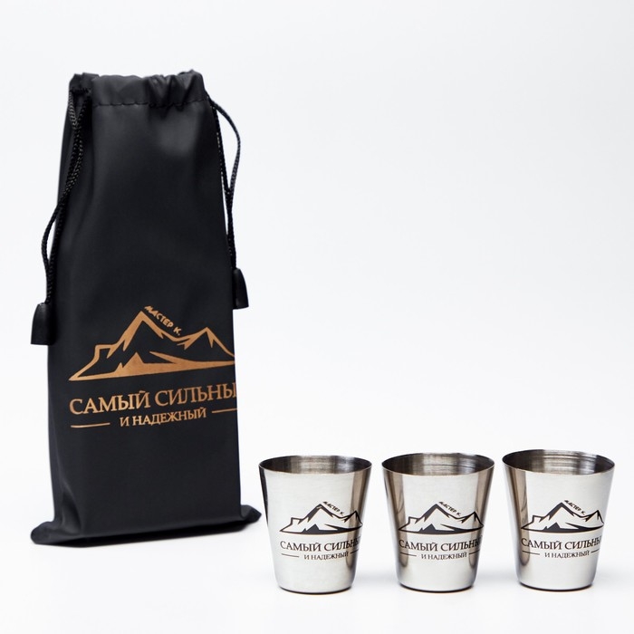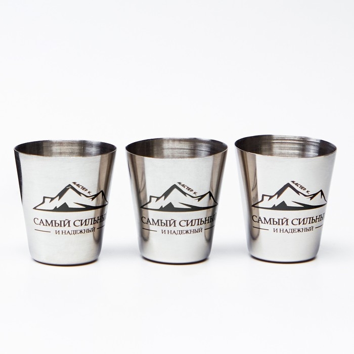 Стопки, 23 Февраля, "Самый сильный и надежный", набор 3 шт по 30 мл, 4 х 3.5 см