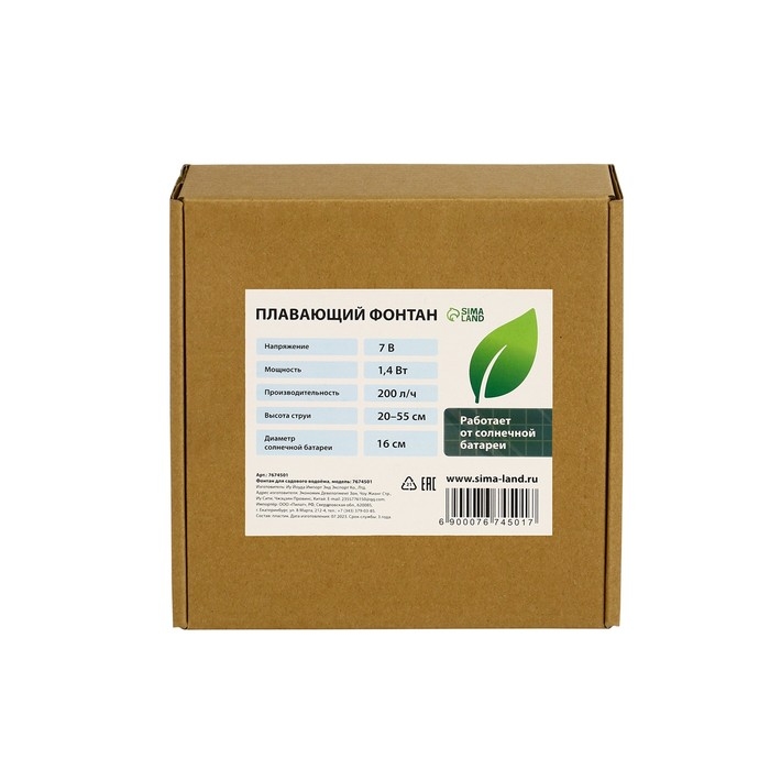 Плавающий фонтан, 7 Вт, 200 л/ч, на солнечной батарее