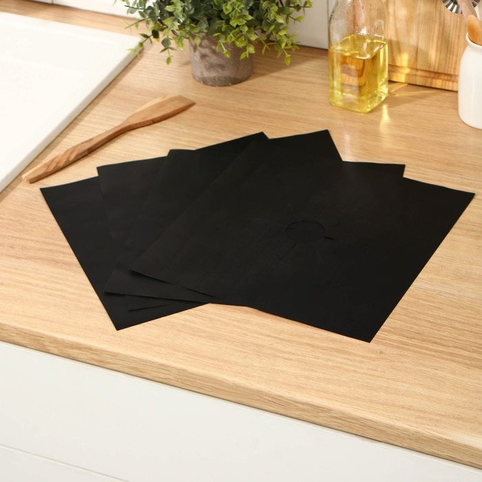 Защитное покрытие для газовой плиты Доляна, 4 шт, тефлон, цвет чёрный