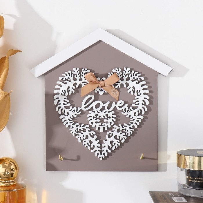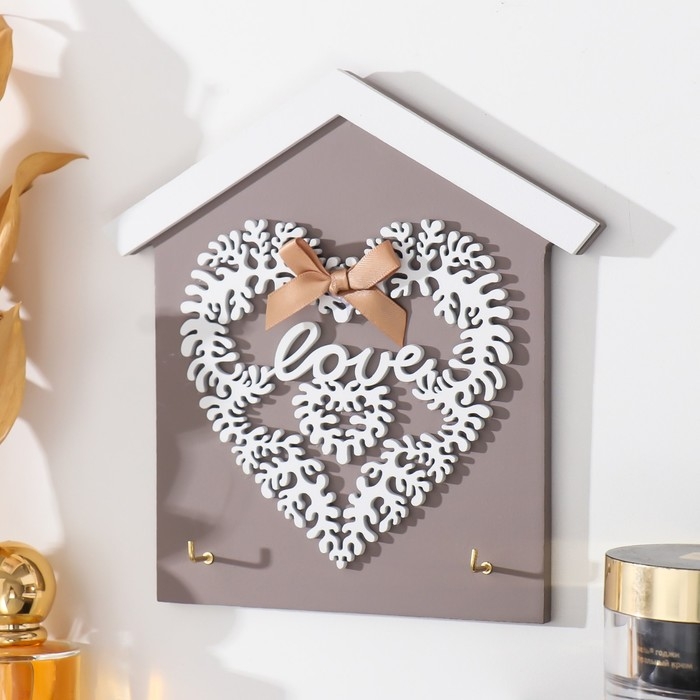 Крючки настенные декоративные «Сердце из листьев. Дом», дерево, 16.5×0.8×16.8 см