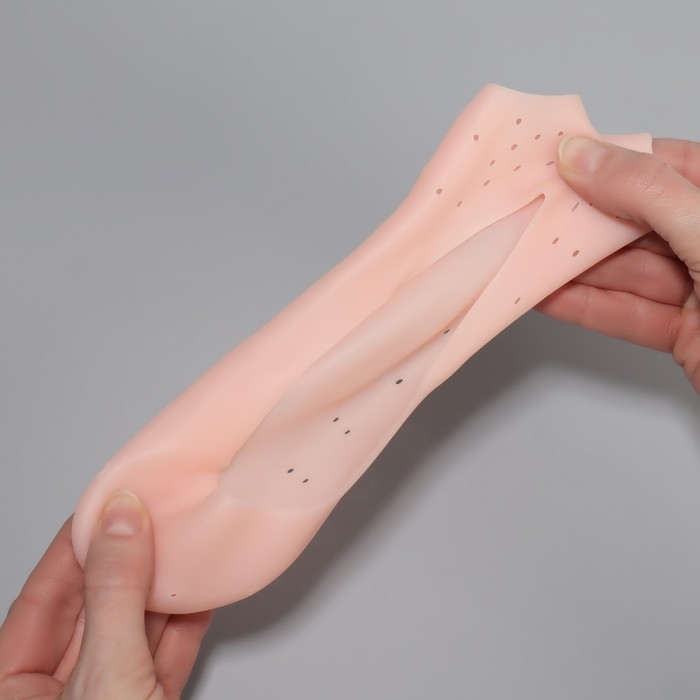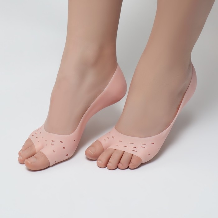 Носочки для педикюра, силиконовые, с перфорацией, с разделителем, 17 × 7 см, цвет бежевый