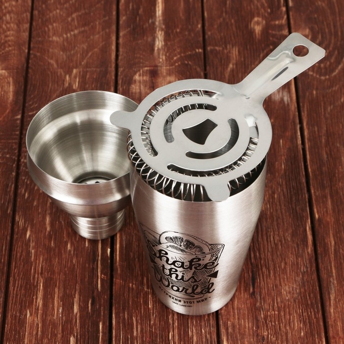 Набор для приготовления коктейлей «Король бара», гейзер, джиггер, шейкер 600 мл, стрейнер, ложка