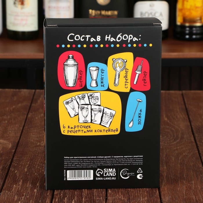Набор барный «Собери друзей», 5 предметов, карточки с рецептами