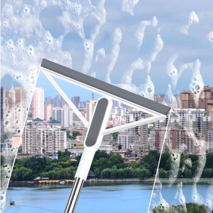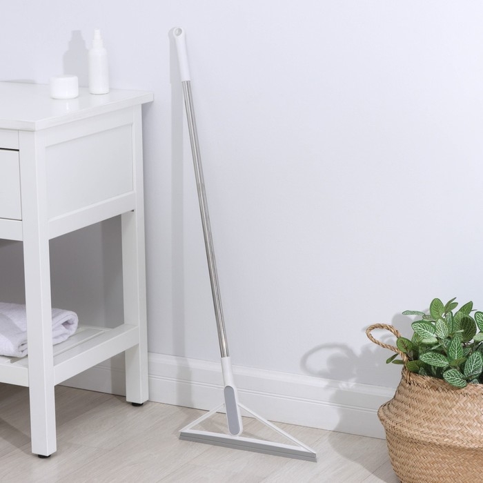 Это универсальная силиконовая швабра, сочетает в себе функции скребка, метлы и веника, подходит для влажной и сухой уборки. Его можно использовать для мытья стеклянных и кафельных поверхностей, а также пола, ванны, автомобиля. В качестве веника, изделие прекрасно собирает шерсть и мусор.